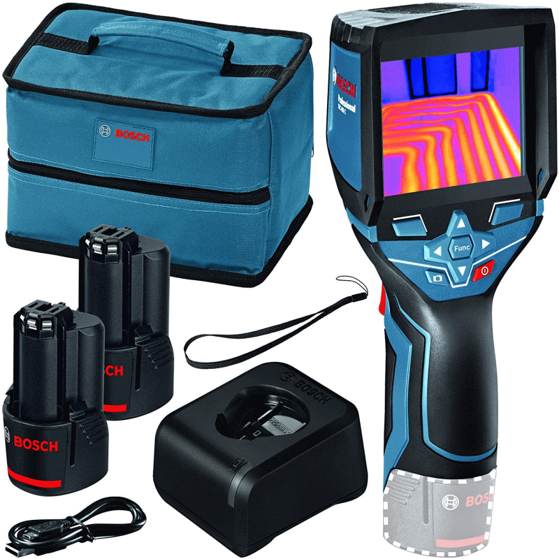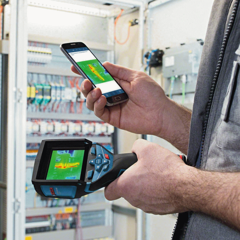Die Bosch Professional Infrarotkamera GTC 400 C erstellt Wärmebilder mit einer Auflösung von 160 x 120 Pixel mit insgesamt 19 200 Messpunkten. Diese ermöglichen eine Visualisierung von Temperaturunterschieden im Bereich von -10°C bis +400°C mit einer Genauigkeit von ±3 °C.
