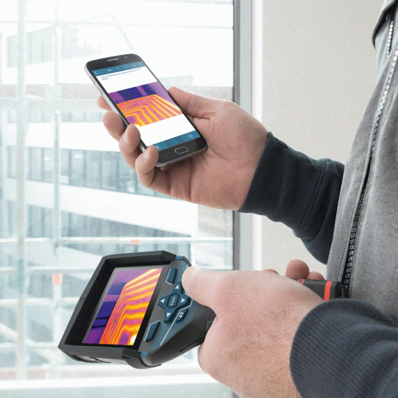 Die Wärmebildkamera ist leicht zu verwenden, da alle wichtigen Funktionen mit nur einem Klick zur Verfügung stehen. Dank des 3,5"-Farbdisplay sind die Wärmebilder leicht auszuwerten und werden automatisch gemeinsam mit einem visuellen Bild gespeichert, das die Lokalisierung der Messung erleichtert. Über ein integriertes TrackMyTools-Modul kann das Gerät geortet werden.
