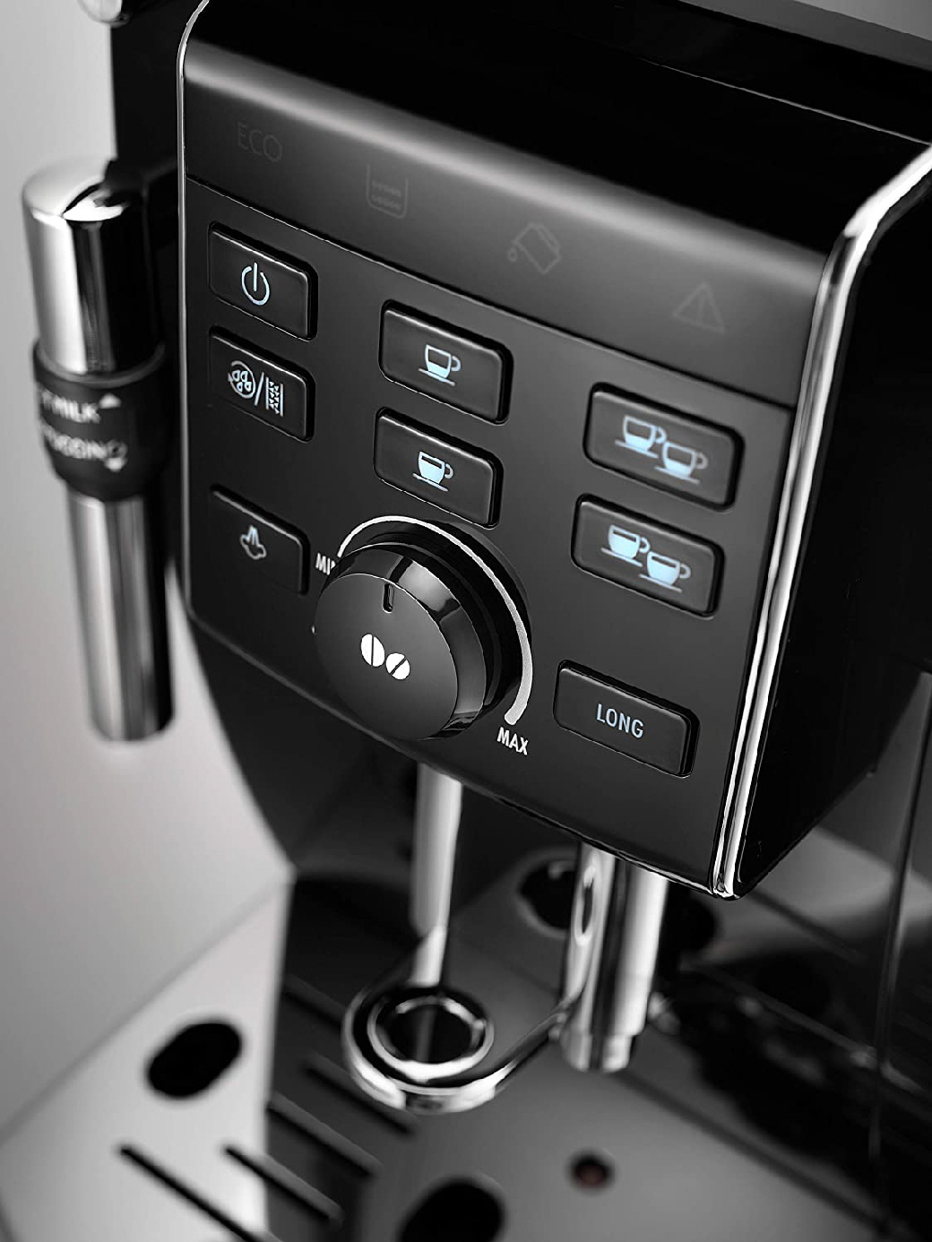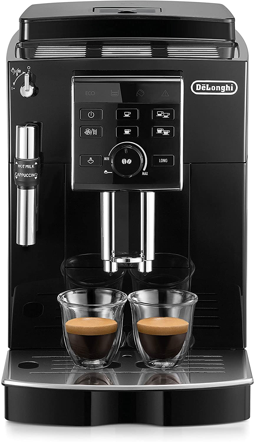 Der De Longhi ECAM 25.120.B ist ein Einstiegs-Kaffeevollautomat mit Milchaufschäumdüse für Cappuccino und Latte Macchiato. Er besitzt die beliebte "Long-Coffee-Funktion" für Kaffeeliebhaber, die das traditionelle Schallbrühverfahren bevorzugen. Mit seinem 1,8-Liter-Wassertank und 250-Gramm-Bohnenbehälter eignet er sich für Mehrpersonenhaushalte, zudem besteht die Möglichkeit des doppelten Tassenbezugs für zwei Tassen gleichzeitig. Es können sowohl Kaffeebohnen als auch Kaffeepulver benutzt werden. Das integrierte, extra leise Kegelmahlwerk erlaubt auch einen Einsatz in Büros. Das Design in Edelstahloptik ist neutral und fügt sich in jede Küche.